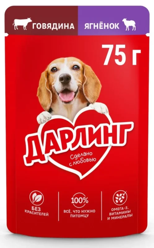 Дарлинг влажный корм для взрослых собак с говядиной и ягненком в соусе 75г