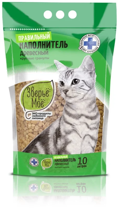 «Зверьё моё» древесный наполнитель, крупные гранулы 10 л.