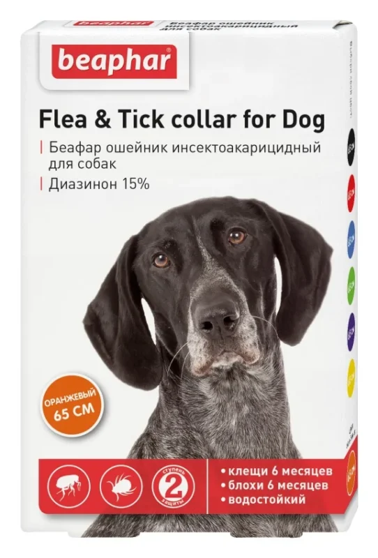 Beaphar Flea & Tick ошейник инсектоакарицидный для собак, оранжевый, 65 см