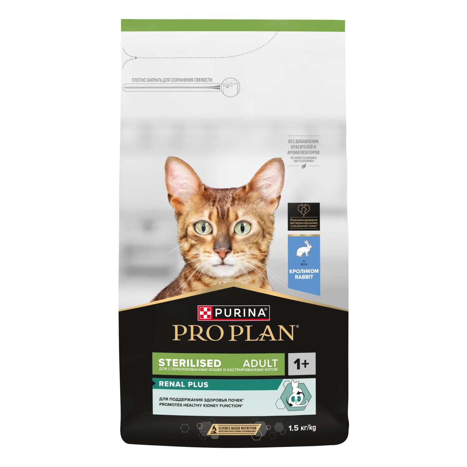 Sterilizasiya olunmuş və sterilizasiya olunmuş pişiklər üçün Pro Plan sterilizasiya olunmuş quru yem, dovşanla birlikdə, 1.5 kq
