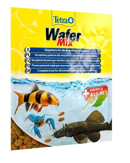 Tetra Wafer Mix, 15 qr olan bütün növ dibdə yaşayan balıqlar və xərçəngkimilər üçün tam bir qidadır.