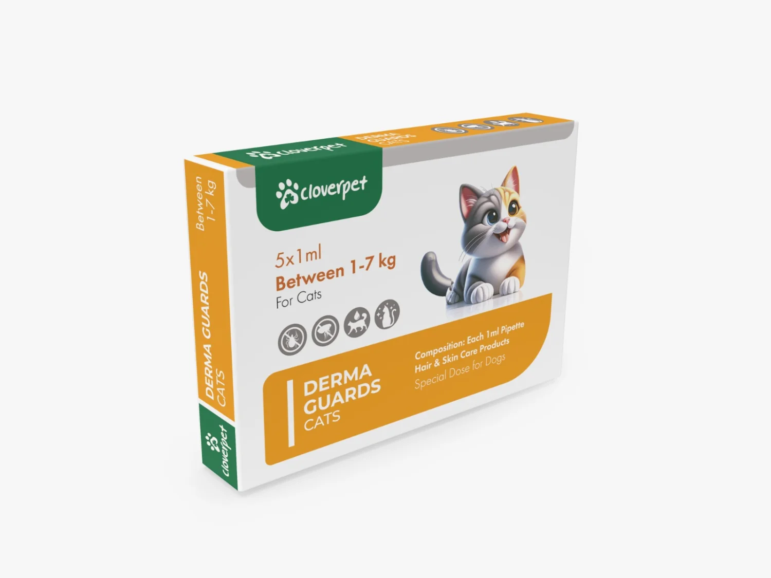 Cloverpet Derma Guards Cat's, pişiklərin tük və dərisini təmizləmək üçün, 1 pipet, 1-7 kq - 5 x 1 ml
