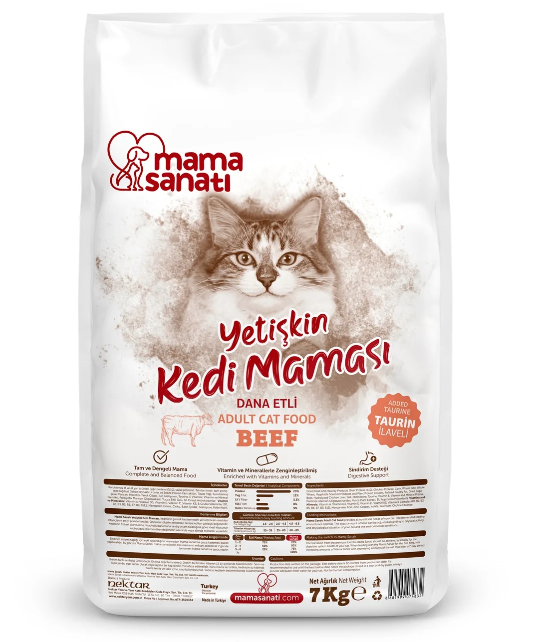 Mama Sanatı quru pişik yemi mal əti ilə (bütöv torba 7 kq)
