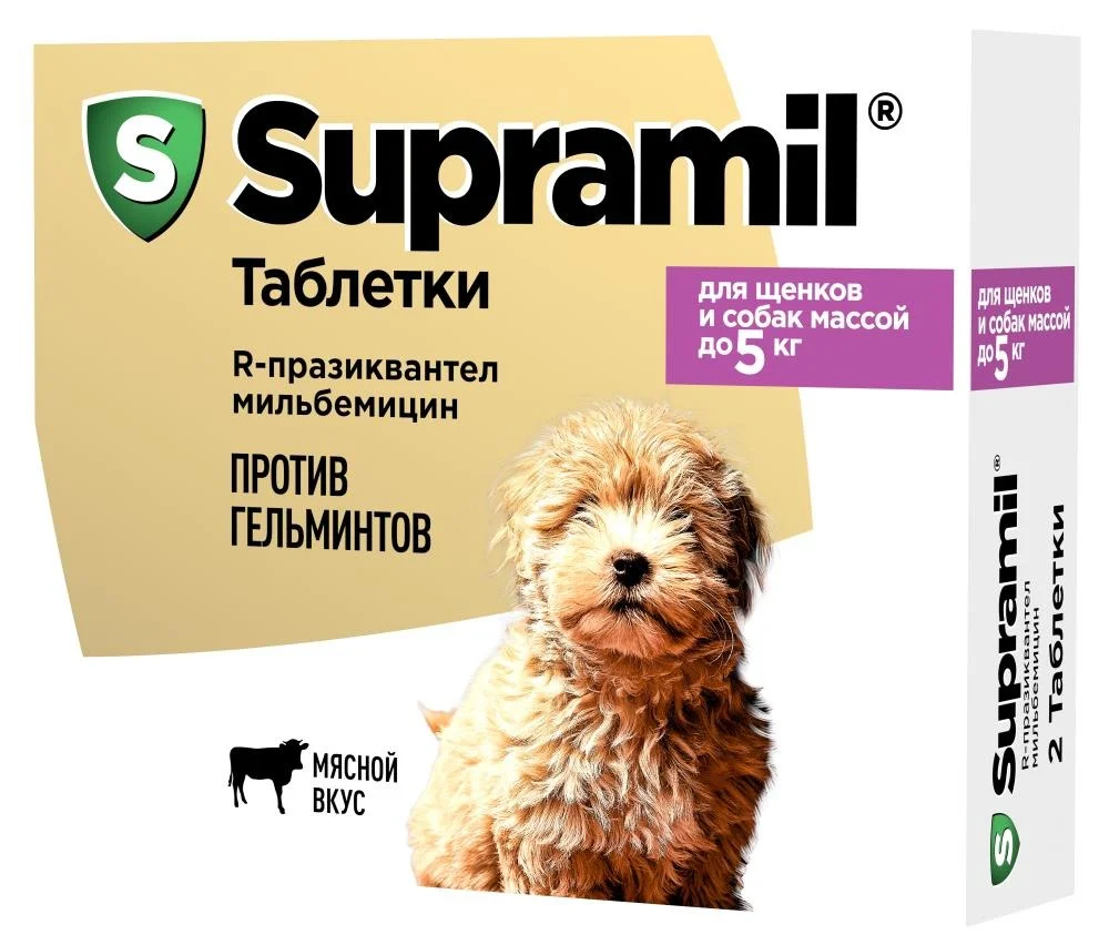 5 kq-a qədər itlər və bala itlər üçün helmintlərə qarşı Supramil tabletləri - 1 tablet