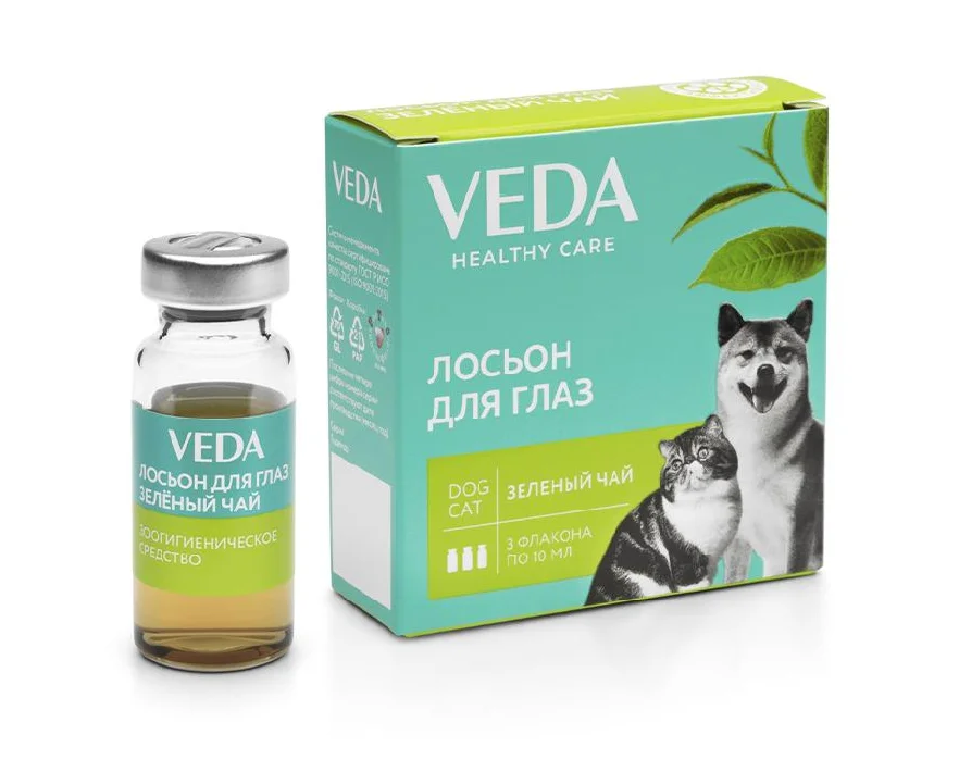 Veda гигиенический лосьон для глаз Зелёный чай для кошек и собак, 10 мл, 3 фл.