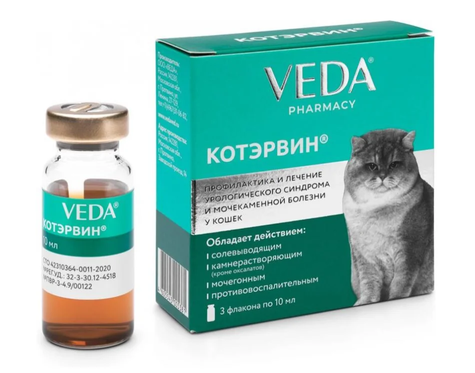 Котэрвин для кошек, 3 флакона по 10 мл