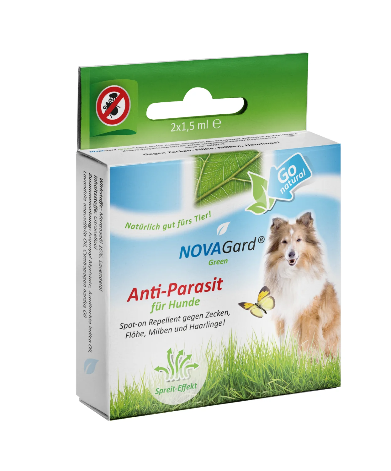 Nova Gard Green Anti-Parasit капли натуральная альтернатива против блох и клещей для собак, 2 x 1,5 мл