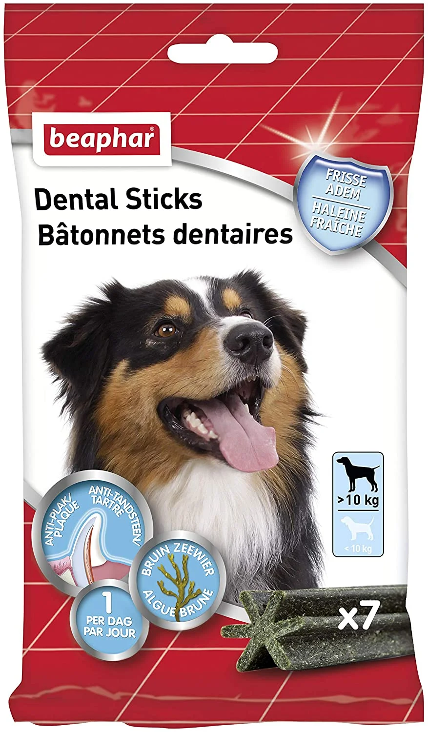 Стоматологические палочки для больших собак весом более 10 кг Beaphar выпускается в виде пакета, содержащего 7 палочек.