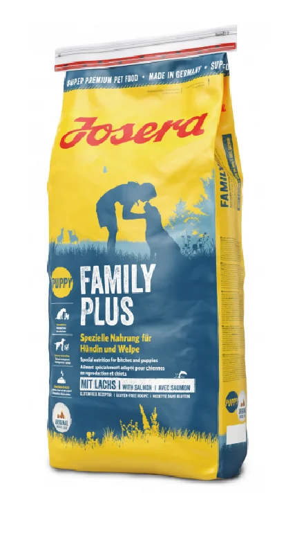 Josera Family Plus полнорационный корм для беременных и кормящих собак, а также для растущих щенков в возрасте до 8 недель с лососем (целый мешок 15 кг)