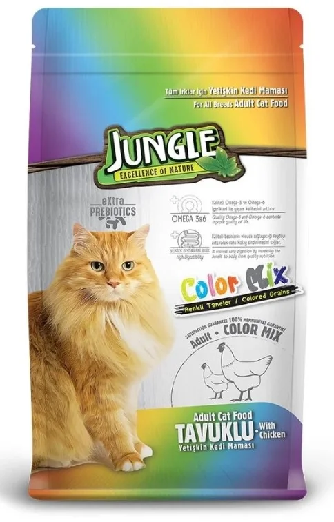 Jungle сухой корм для взрослых кошек цветной микс с курицей (на развес)