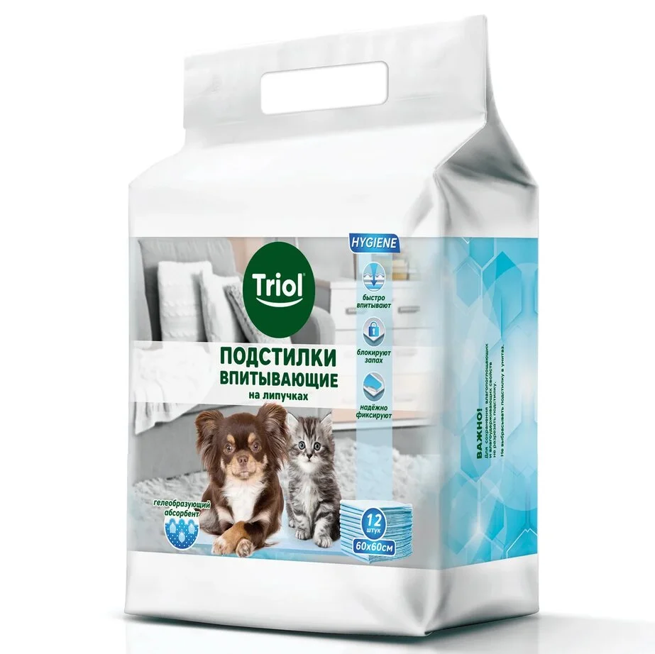 Triol подстилки впитывающие на липучках для кошек и собак 60×60 см 12 шт