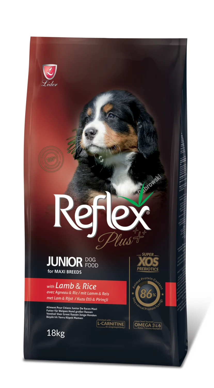 Reflex Plus Junior для щенков крупных пород ягненок с рисом (целый мешок 18 кг)
