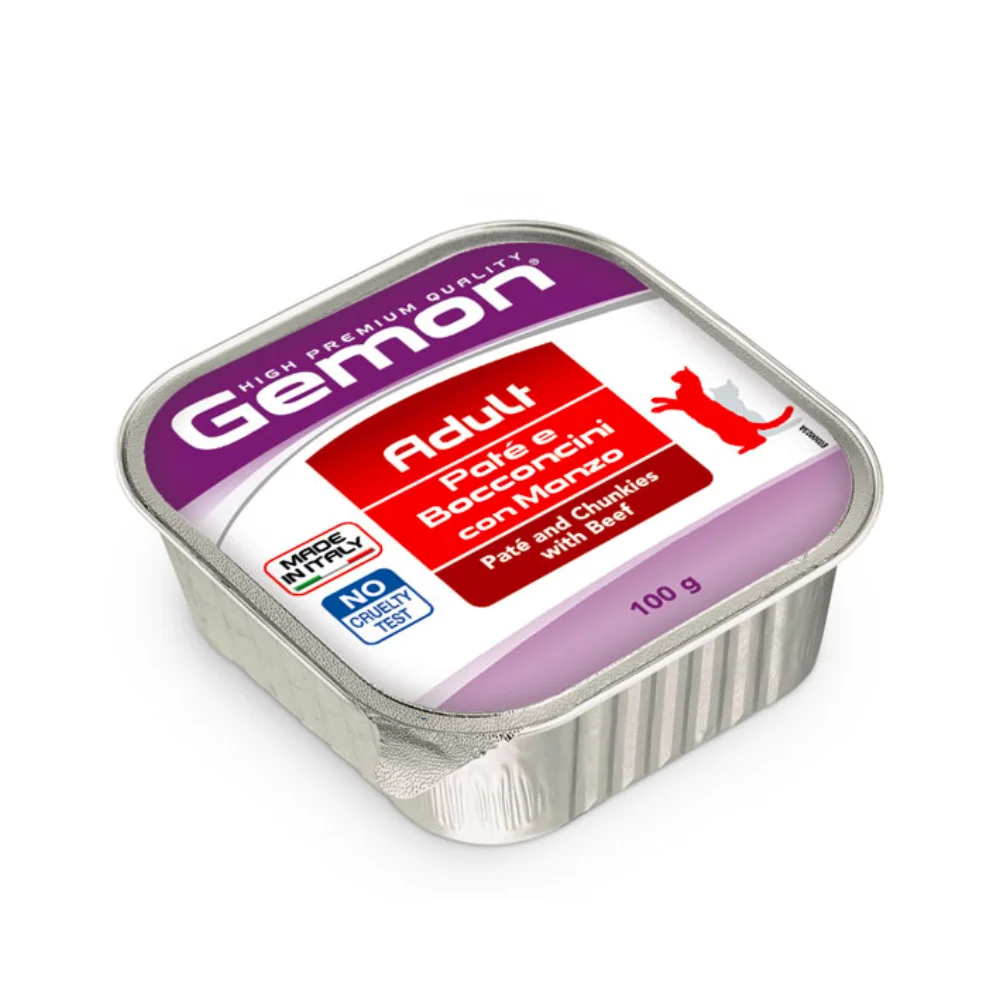 Gemon Adult влажный корм для кошек паштет с кусочками говядины 100г