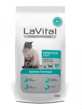LaVital Sensitive Adult Cat Salmon Formula для взрослых кошек с чувствительным пищеварением, с лососем (целый мешок 12 кг)