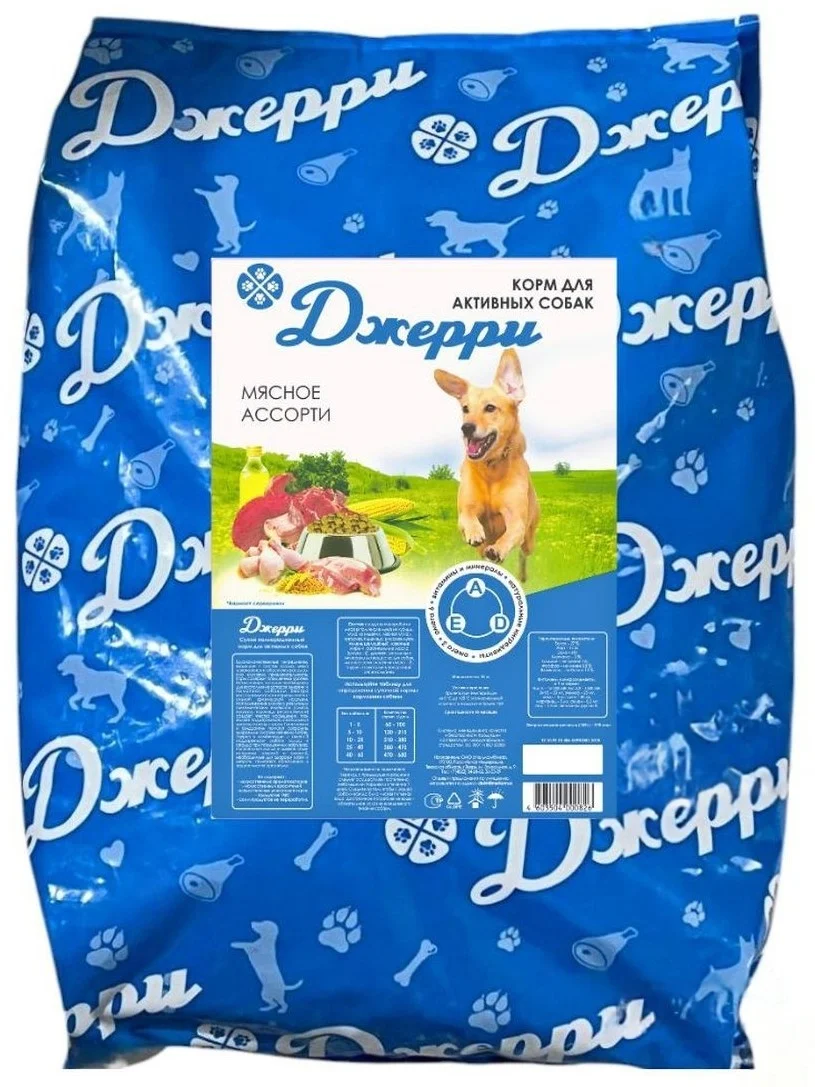 Джерри, сбалансированный сухой корм для активных взрослых собак всех пород, мясное ассорти (на развес)