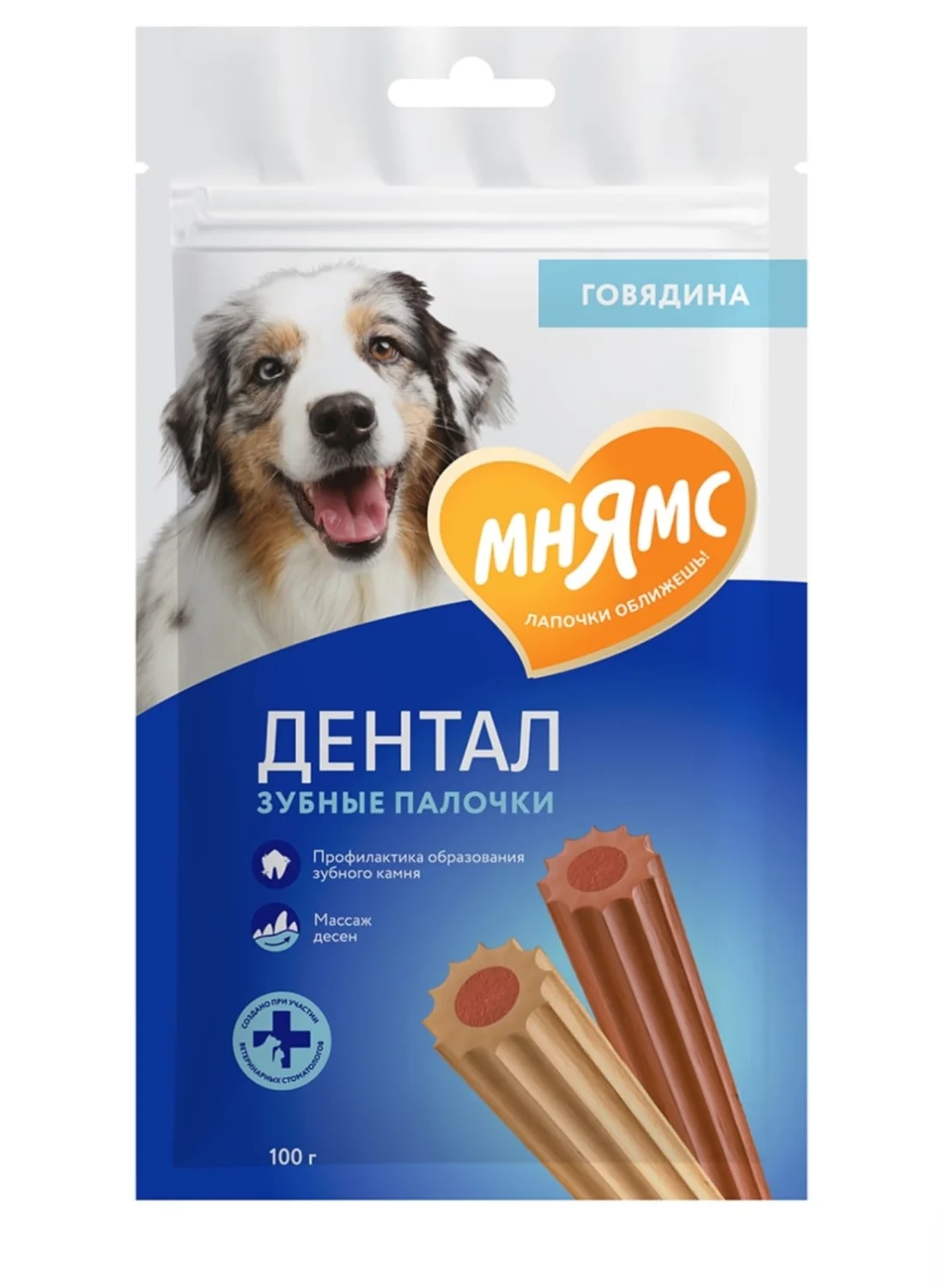 Мнямс ДЕНТАЛ Лакомство для собак «Зубные палочки» с говядиной 100г