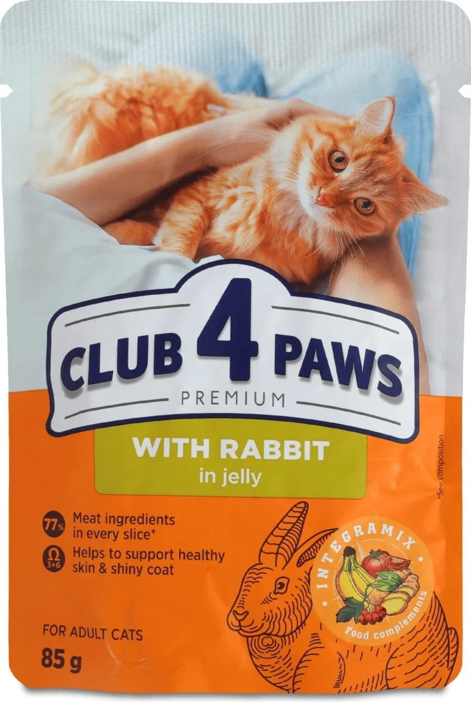 Club 4 Paws Premium сухой корм для взрослых кошек с кроликом в желе, 85г