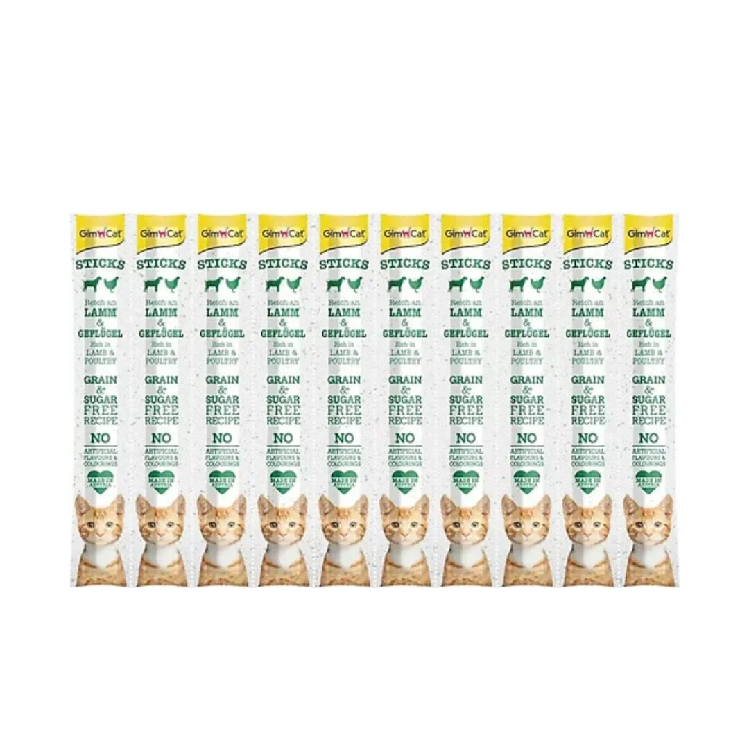 GimCat Sticks лакомство — палочки для кошек с ягненком и птицей, 10 шт